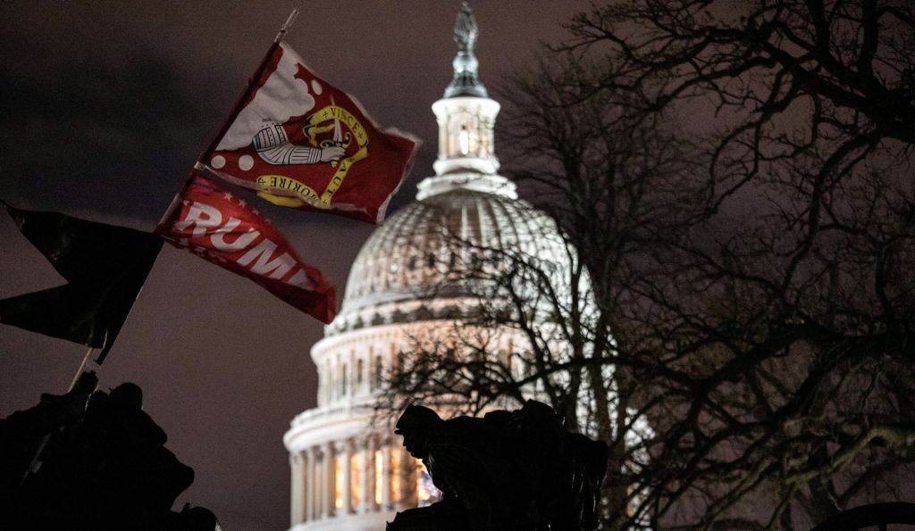 “A Confederate flag, a shirt reading ‘Camp Auschwitz,’ militia and paramilitary insignia, and white nationalist symbols: These were some of the members of the mob of Trump supporters who stormed the Capitol building January 6 in a dramatic attempt to delay the certification of the results of the election, an act unprecedented in U.S. history.”