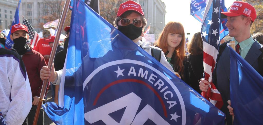 “Fuentes’ army of self-described “Groypers”—a name borrowed from their online mascot, a cartoon toad closely related to the Alt Right icon Pepe the Frog—looked like clean-cut, Generation Z, White kids: campus Republican types in polo shirts, jeans, and MAGA hats, wielding American flags and edgy memes on their phones. The Groypers blended into the larger MAGA crowd, distinguished only by their cluster of blue “America First” flags, while Fuentes, in a speech carefully tailored to appeal to mainstream Trump supporters, championed “the American people, rising up and taking control over our government and over our country once again.”[3] There were no audible calls to save the White race from extinction at Fuentes’ rally, though, in endless talk of preserving the “tradition” and “heritage” of “our people and our historic nation,” the undertone wasn’t hard to detect.”